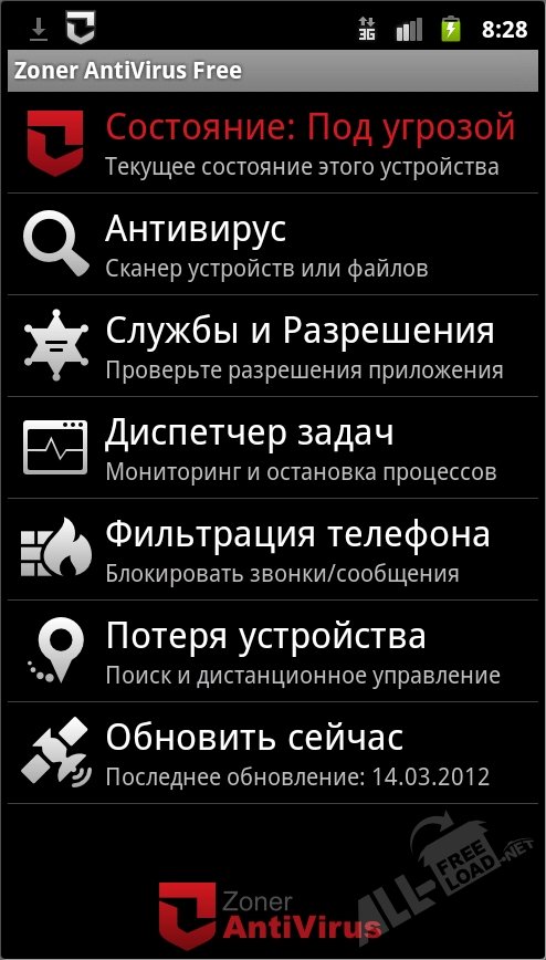 Возможности антивируса Zoner Antivirus Free для Android: