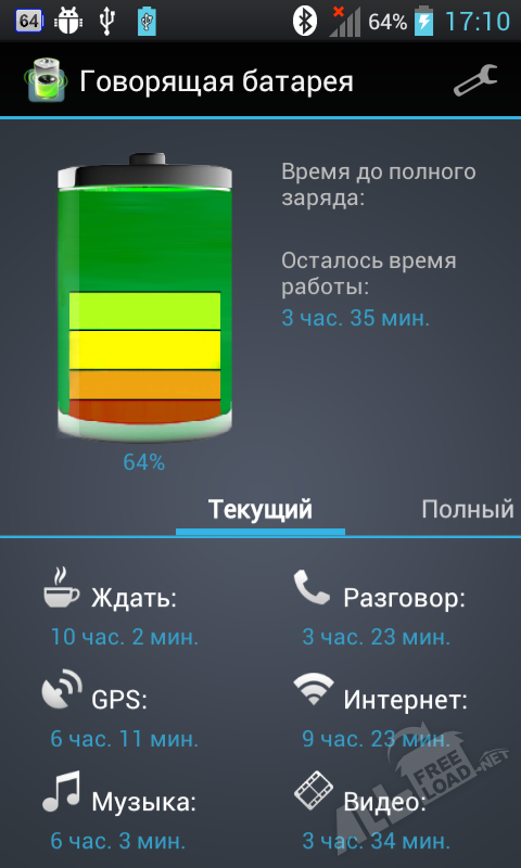 Возможности приложения Говорящая батарея для Android