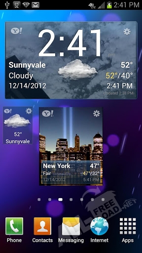 Yahoo Погода прекрасно сочетает в себе великолепный дизайн, который сможет украсить экран любого устройства, и множество разнообразных функций. Это приложение предоставит пользователю информацию о температуре и влажности воздуха, скорости ветра и других метеорологических данных в заданном городе. К тому же, его можно скачать бесплатно. Чтобы воспользоваться его возможностями, необходимо подключение к интернету, а при желании узнавать погоду в местах своего нахождения, нужно настроить GPS функцию. После активации необходимых функций и установки приложения, на рабочем столе устройства можно поместить виджет и получать только самую важную информацию о погоде.