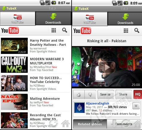 YouTube Downloader для Android имеет встроенный плеер, который может воспроизводить видео до и после загрузки. Пользователь может создавать свои собственные списки воспроизведения, удалять или добавлять в них файлы при помощи всего лишь одного касания. Вся информация о том, когда скачивался и воспроизводился файл, доступна через интерфейс приложения. Благодаря поддержке тегов ID3 пользователь сможет узнать и дополнительные данные о скаченном файле, например, информацию об исполнителе, название альбома и другую.