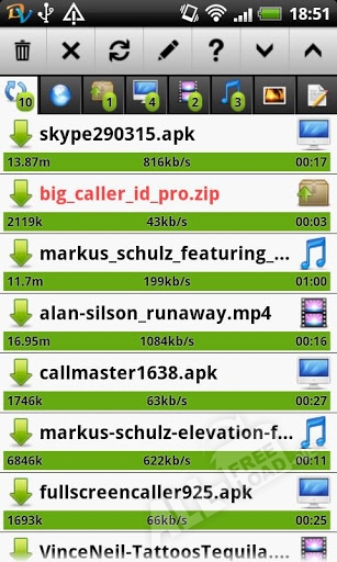 Приложение DVGet для Android является мощным менеджером загрузки, который способен осуществлять закачку сразу нескольких файлов одновременно. Данная программа имеет автоматическую проверку файлов на наличие вирусов, троянов и других вредоносных объектов, что позволяет пользователю не беспокоиться о безопасности своего смартфона или планшета. Разобраться с навигацией не составит труда, так как интерфейс приложения выполнен очень удобно, любые действия осуществляются на интуитивном уровне. В верхней части экрана расположена панель, где находится информация обо всех загрузках. Пользователь DVGet может управлять процессом закачки, как в строке состояния, так и в контекстном меню, которое вызывается длительным нажатием на выбранном файле.