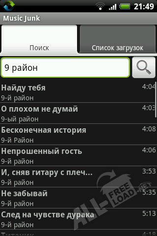 С помощью приложения Music Junk можно быстро найти и скачать в интернете абсолютно любую мелодию, пополнив свою коллекцию самыми последними новинками в мире музыки или же собрать недостающие альбомы любимой группы. Все что необходимо будет сделать пользователю, чтобы в полной мере насладиться избранными композициями, так это ввести в приложение название исполнителя, группы или самой песни, а Music Junk для Android займется ещё поиском. Запустив приложение после установки, пользователя встретит простой дизайн с понятным интерфейсом.