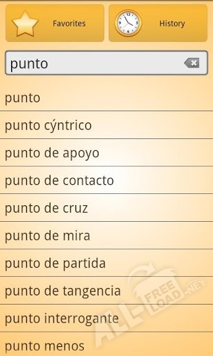 Русско-испанский словарь скачать бесплатно означает получить доступ к следующим функциям: контекстному поиску, который позволяет перевести на иностранный язык любое слово, содержащее в статье. Автоматическому сохранению вводимых в поисковое поле данных. Возможности работать со списками «история» и «избранное», включая редактирование содержащихся в них данных, а также полное или частичное удаление из памяти. Быстрый доступ к панели настроек, находящейся в нижней части экрана. При помощи последних пользователь сможет индивидуализировать программу, сделав работу с ней более комфортной (доступны изменение шрифта и цветовой темы). Установка мини-программы «Случайное слово дня» позволяет углубиться в изучение испанского языка, ежедневно получая «дозированную» информацию, которая лучше усваивается.