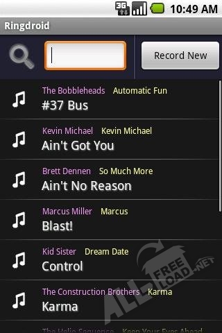 Приложение Ringdroid для андроид устройств позволяет создавать свои собственные уникальные рингтоны прямо на мобильном устройстве. Приложение поддерживает несколько наиболее используемых и известных аудиоформатов, таких как WAV, MP3 и 3GPP. Ringdroid способен создавать сигналы для будильника и оповещений, работая с аудио- файлами и записями расположенными прямо в памяти Android устройства. Благодаря встроенному в приложение диктофону, оно может работать и только что записанными звукозаписями. Удобный и понятный интерфейс позволяет легко работать над собственными треками; вырезать части песен, копировать и перемещать их и все это с использованием гибкого сенсорного интерфейса. Пять различных видов масштаба позволяют лучше настроиться на нужный отрезок песни и выделить нужный участок. Возможность выделения нужного участка с помощью сенсора или указанием точных временных координат делают управление еще более простым. Файл, созданный с помощью этого Android приложения, можно использовать по желанию. Программа позволяет установить его как мелодию для звонка, оповещение, или же как тревогу для будильника. Ringdroid, имея доступ к контактам телефона, позволяет устанавливать свой собственный рингтон для каждого контакта в записной книжке.