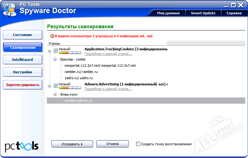 Один из наиболее полезных и многофункциональных антишпионов Spyware Doctor позволяет в режиме реального времени обеспечивать комплексную защиту ПК от воздействия самых разнообразных троянов, шпионских и рекламных модулей и иного нежелательно ПО. Программный пакет выполняет полноценное сканирование системы, предупреждая атаки со стороны вредоносного ПО на браузеры, не позволяя при этом собирать и передавать личные данные пользователя.