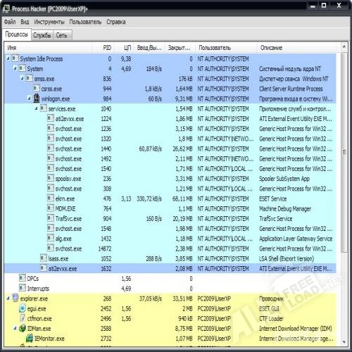 Приложение Process Hacker предназначено для качественной и быстрой работы со всеми существующими процессами. Также данная утилита способна не только управлять памятью компьютера, но ещё и наблюдать за сетевой и дисковой активностью. Ещё одной интересной и не менее важной функцией Process Hacker является возможность управления драйверами и системными сервисами, где программа умеет как грамотно устанавливать, так и полностью удалять их из системы. Кроме того, можно очень легко освобождать такие объекты, которые были заблокированы другими процессами. Для пользователя эта утилита будет полезна ещё и тем, что она может быть использована, как отладчик уровня ядра. Либо при помощи Process Hacker может быть произведён поиск всевозможных скрытых процессов.