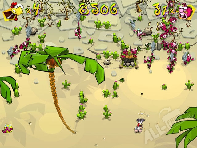 В основе игрового приложения Куриная месть. Первая разборка скачать которое можно бесплатно, лежит история о курице. Животное отправилось на необитаемый остров, чтобы спрятаться от голодных туземцев, которые охотятся за потенциальным обедом. В распоряжении пользователя, который играет в приложение, находится различное оборудование: ружье, пулемет, ракетница. Оружие помогает игроку устранить опасность в виде туземцев и очистить себе ход. Уничтожая врагов, пользователь получает возможность зарабатывать монеты, за которые можно приобретать новое оборудование и улучшать ружье, пулемет и ракетницу. На протяжении боя курица получает дополнительные бонусы, которые позволяют улучшить защищенность от туземцев, траекторию полета пуль и проложить путь через тропические заросли. На месте уничтожения каждого воина вырастает пальмовое дерево, за которым могут прятаться другие воины, но попадание в пальму приносит игроку дополнительные монеты и очки.