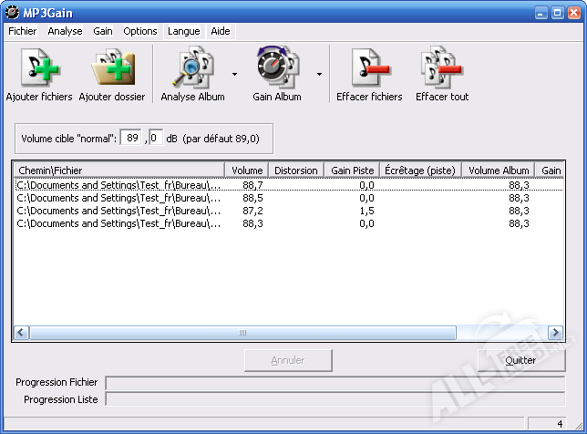 MP3Gain — бесплатное приложение для регулирования громкости звука аудио файлов без перекодировки и потери качества. Первая его версия была запущена весной 2002 года. Утилита состоит из базы, которая приводит музыкальные файлы к одному уровню громкости и может быть запущена из консоли, и графической оболочки, созданной на Visual Basic для Windows пользователей. Можно скачать МП3Гейн интерфейсы для систем Linux и Mac OS X, а также JavaMP3Gain, при этом нужно помнить, что они написаны не официальными разработчиками, оригинальная версия графической среды есть только для Виндовс.