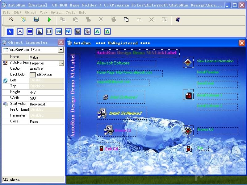 Управление всеми функциями программы AutoRun отличается простотой и удобством, а скорость выполнения операций приятно удивит даже продвинутых пользователей. Для создания желаемого макета главного меню записываемых дисков в приложение добавлена функция динамического проектирования, открывающая доступ к готовым шаблонам, фигурам и разнообразным графическим эффектам. Утилита AutoRun поддерживает работу с различными форматами файлов, включая EMF, JPEG и анимированные GIF изображения.