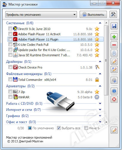 Благодаря широким возможностям и полноценному набору функций программы MInstALL, различные драйвера, кодеки или иное программное обеспечение можно устанавливать на компьютер в пакетном режиме, что позволяет существенно сэкономить время. В утилите присутствует встроенная автоматическая проверка системы на наличие установленных программных компонентов, благодаря чему можно избежать повторной установки той или иной программы.