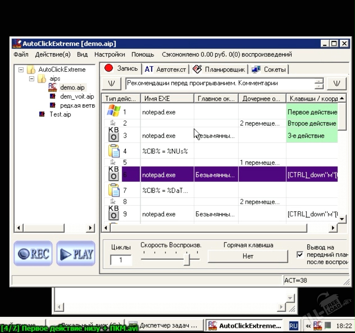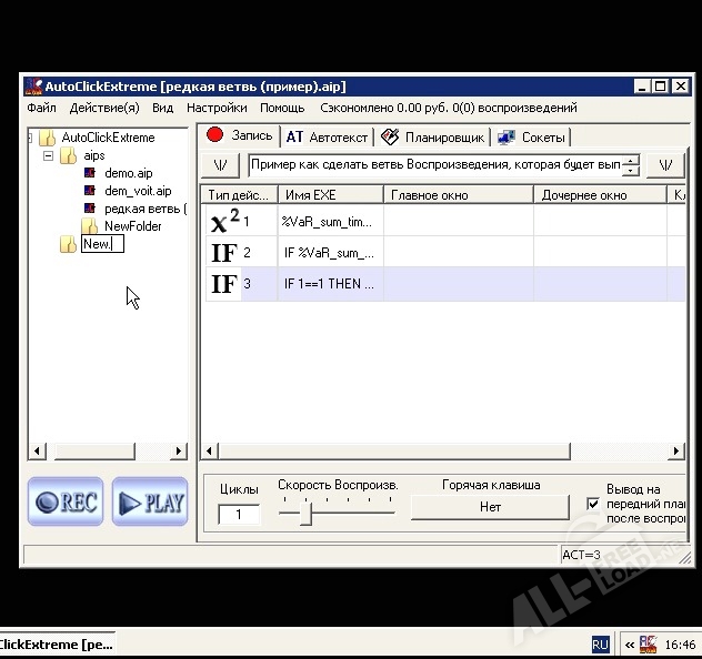 AutoClickExtreme – программа для Windows, которая поможет избавиться от необходимости совершать одинаковые действия. Используя данную утилиту, вы сможете автоматизировать многие действия, при работе в операционной системе, либо отдельных приложениях. Основная особенность аналогичных кликеров – возможность настраивать работу системы при отсутствии пользователя за компьютером. Например, если вам нужно удалить один знак в названии тысячи файлов, то наиболее просто это можно сделать через AutoClickExtreme. Достаточно просто показать программе инструкцию действий, и запустить готовый скрипт. Через какое-то время на компьютер придёт сообщение об окончании работы. Подобные функциональные возможности могут быть полезны не только профессионалам, но и домашним пользователям Виндовс.