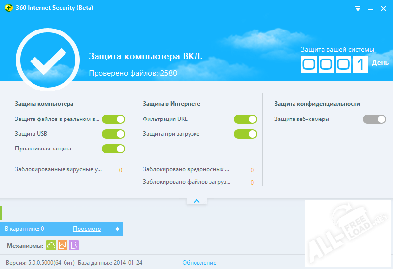 Программа 360 Интернет Секьюрити обладает необходимыми инструментами для обеспечения комплексной защиты компьютера от вирусных атак и вредоносных файлов. Данное приложение функционирует на базе трех движков, благодаря чему сочетает в себе широкие возможности и огромный потенциал для надежной защиты компьютера в режиме реального времени. Помимо этого, в антивирусе 360 Internet Security присутствует дополнительная функция "Антикейлоггер", которая демонстрирует отличные показатели противодействия различным вирусным угрозам.