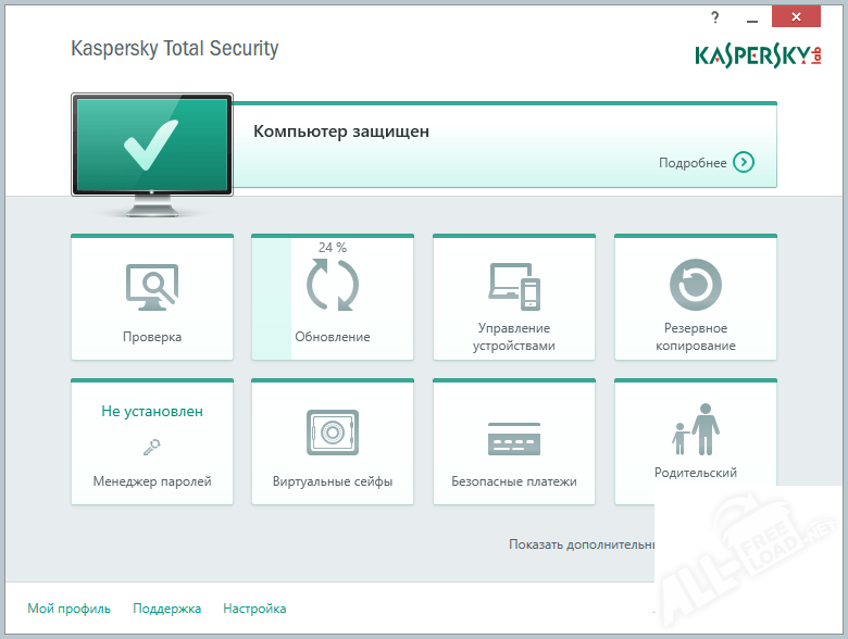 Используя этот превосходный продукт, вы получите возможность фиксировать точное время, определять характер и продолжительность работы каждого конкретного пользователя, сидевшего за вашим ПК. Кроме того, Kaspersky Total Security оснащен функцией блокировки доступа к сетевым ресурсам с неприемлемым содержанием. Такие специальные инструменты, как резервное копирование, шифрование данных, родительский контроль и прочие, гарантируют ранее недостижимый уровень защиты персональных данных. Максимально широко использовать все возможности Всемирной паутины вам поможет прекрасный антивирус Kaspersky Total Security скачать бесплатно который можно в сети.