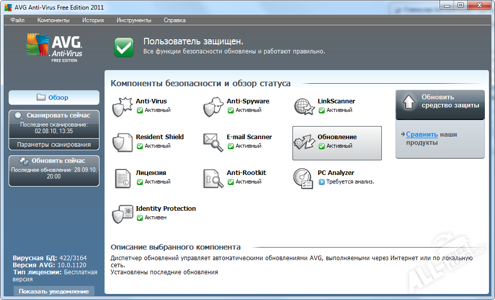 Простой и удобный AVG AntiVirus FREE является отличным помощником для организации бесплатной домашней базовой защиты ПК от различного рода угроз. Функционал продукта позволяет вести постоянный быстрый мониторинг всех процессов, осуществляя при этом параллельное обновление информации с центрального сервера о самых последних и совершенных угрозах.