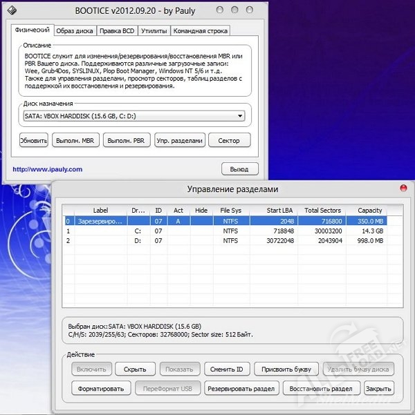 Ещё, например, при помощи Bootice будет возможно выполнить установку Grub4DOS к MBR/PBR, либо NTLDR к имеющемуся PBR, и т.д. Проще говоря, вариантов установки может быть множество. Помимо этого есть даже возможность переименовать по собственному желанию любой загрузчик. Также можно полностью отформатировать и заново разметить флеш-диск. годно. Существует возможность выполнить разделение носителя на самостоятельные разделы. Функция же бэкапа/постановления MBR или PBR записей, станет приятным дополнением к большому перечню функциональных возможностей программы.