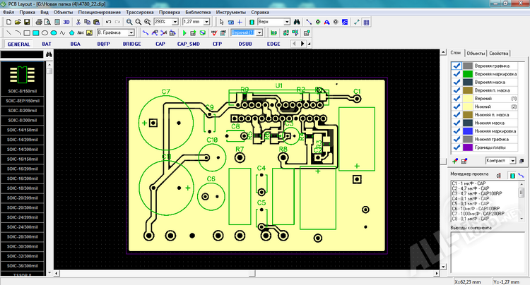 - Обширная база корпусов электронных компонентов.