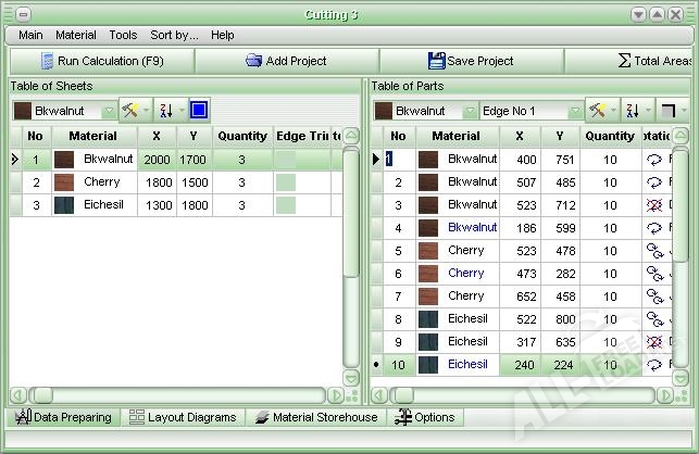 Пользователь может задать необходимое для раскройки количество листов, сохранить проект в собственном формате, а также экспортировать в другие программы. Есть возможность визуализации фактуры материала, а также маркировки кромки и остатков. Утилита позволяет также сохранить реализованный проект в качестве спецификации.