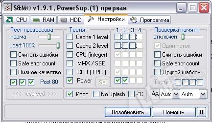 Программа S&M на русском языке, установить которую можно бесплатно, представляет собой компактную и мощную диагностическую систему, которая поможет оценить, насколько ваш винчестер, оперативная память, видео карта и другие аппаратные средства готовы выдерживать критические нагрузки. Компьютер заставляют работать на высоких оборотах при помощи команд SSE, и в таких условиях программа выясняет стабильность памяти и находит ошибки в работе ЦП. Также определяется эффективность питания главных компонентов ПК.
