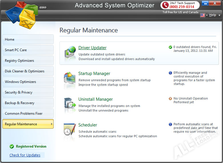 Программа Advanced System Optimizer вобрала в себя полный набор инструментов и механизмов, которые поддержат Ваш компьютер в режиме быстродействия, исключив замедления в работе, возникновение ошибок и обеспечив полную безопасность системы. Помимо поддержания быстродействия, программа также увеличивает производительность компьютера. Advanced System Optimizer может чистить реестр и исправлять возникающие в нем ошибки, выполнять коррекцию жестких дисков и обслуживать их. Все не нужные файлы будут удалены и программа проведет обновление устаревших драйверов, что позволит стабилизировать систему. Для игр программа проводит оптимизацию загрузки оперативной памяти. В целях безопасности проводит запасное копирование документов, их последующее восстановление, а также обслуживает Windows посредством решения ряда задач.