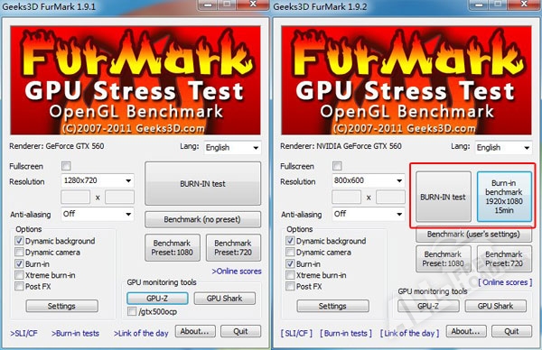 FurMark – небольшая утилита, которая создана специально для выполнения стресс-теста OpenGL API-совместимых графических карт. Данное приложение может вывести полученные сравнительные характеристики видеокарты пользователя с видеоадаптерами других пользователей, либо с новой картой самого пользователя. В утилите FurMark специальный алгоритм тестирования используется таким образом, что во время стресс-теста происходит перегрев видеокарты. Поэтому утилита должна применяться на полностью исправной и настроенной системе, в которую установлены самые последние версии драйверов.