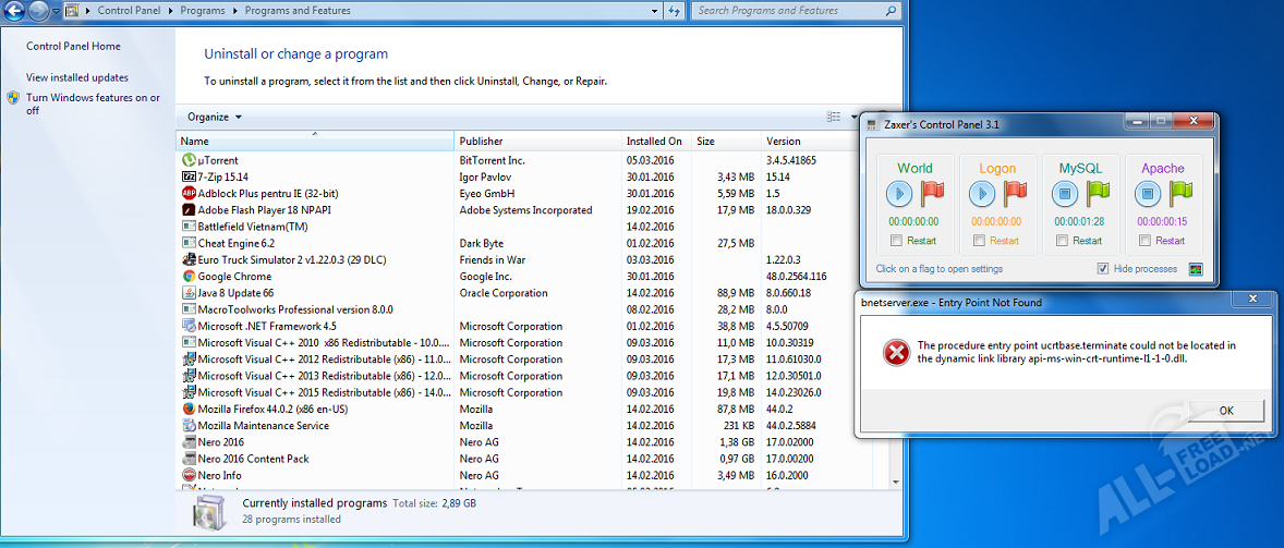 Api-ms-win-crt-runtime-l1-1-0.dll – обеспечивает динамический доступ программ и игр к файлам библиотеки, его целостность и актуальность очень важны. Программы постоянно используют данные файлы и могут вносить изменения в них, особенно, если версия программы более новая, чем версия файла. В таком случае, может появится окно: отсутствует файл api-ms-win-crt-runtime-l1-1-0.dll. После появления данного сообщения, программа или игра не запуститься, даже, если попробовать снова или перезагрузить компьютер.