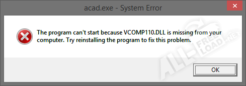 Файл Vcomp110.dll, принадлежит библиотеки Microsoft Visual C++ 2012, поэтому достаточно её установить если у Вас её нет, или переустановить если у Вас она повреждена. Стоит отметить, если у Вас система 32 бит - ставить нужно только 32 битную версию, если 64 - ставить нужно как 32 так и 64 бит.