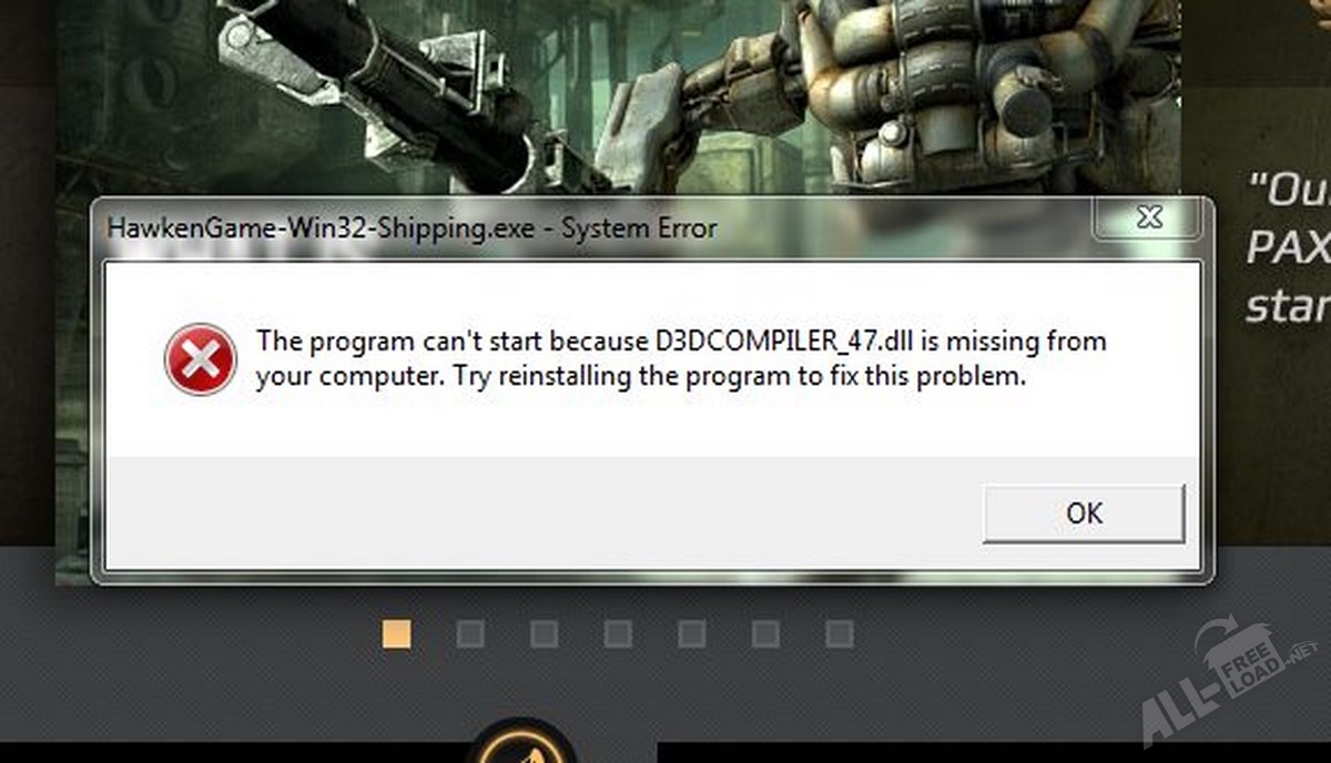 Зачастую причиной для большинства ошибок при запуске современных игр, а также сходных по требованиям к графике неигровых приложений является ошибка d3dcompiler 47, связанная с отсутствием вышеназванного dll-файла, который при нормальном варианте установки должен располагаться по адресу С/Windows/SysWOW64 или С/Windows/System32 (последний адрес — для 32-х-битных версий ОС Windows). В процессе запуска игры или приложения пользователь видит окно, содержащее сообщение, что отсутствует файл d3dcompiler 47 dll, и предложение переустановить для решения данной проблемы некую неназываемую программу.
