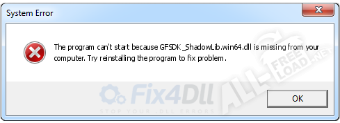 Обычно файл GFSDK_ShadowLib.win64.dll расположен в Windows\SysWOW64, так как используется в ОС Windows 64 бит (не имеет значения, XP, Vista, Seven или 8, 10), порою копия этого файла также находится в каталогах некоторых приложений. Если GFSDK_ShadowLib.win64.dll отсутствует или же он поврежден, программа или игра, которая использует этот файл, не может найти его и не может получить необходимые данные. Так что Вы получите ошибку и сообщение, подобное этому: «Не удается запустить программу, поскольку отсутствует файл GFSDK_ShadowLib.win64.dll на Вашем компьютере. Попробуйте переустановить программу, чтобы устранить эту проблему».