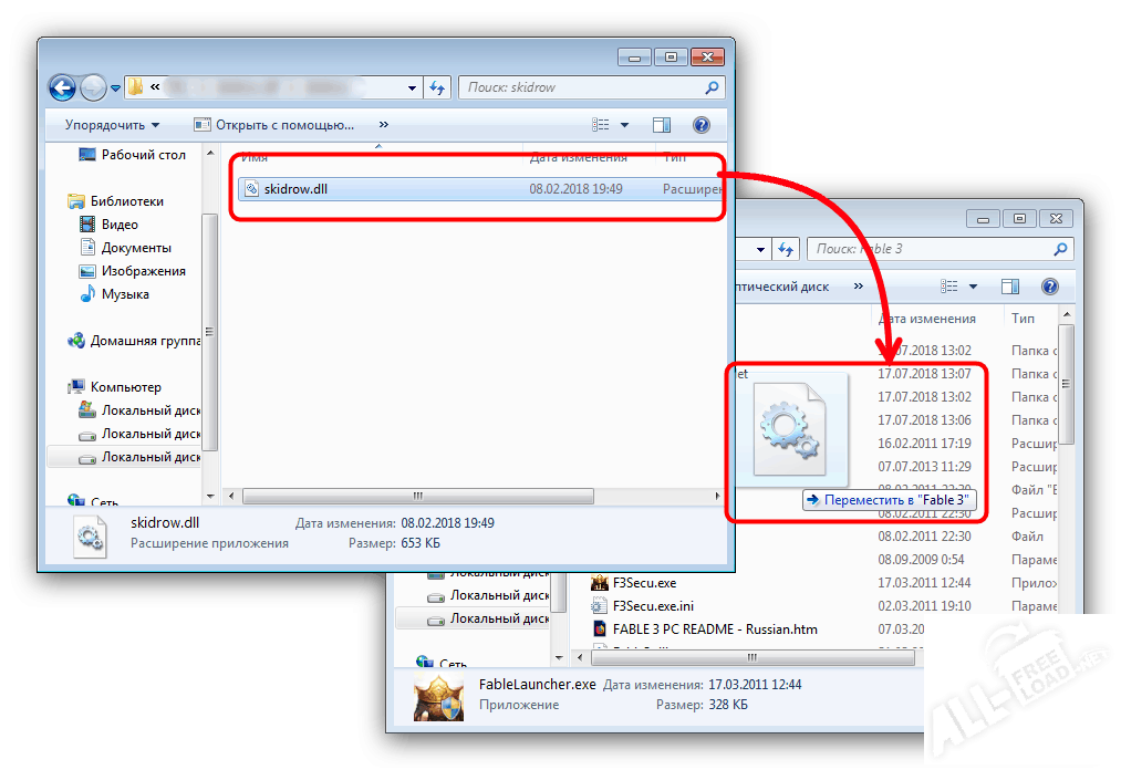 Так как skidrow.dll не входит в состав стандартных пакетов библиотек, а необходим для assassins creed 3 и ряда других игр, устранить проблему с помощью переустановки пакета библиотек не удастся. Попытка исправить ошибку с помощью повторного получения и распаковки архива игры также не гарантирует результата. Высока вероятность того, что файл поврежден изначально либо отсутствует в инсталляционном пакете. Самый действенный способ – скачать skidrow.dll для far cray 3 из надежного источника и корректно установить в операционную систему. Это займет минимальное количество времени, так как размер библиотеки не превышает 5 кбайт. Даже при небольшой скорости сетевого соединения, получить файл можно за считанные секунды.