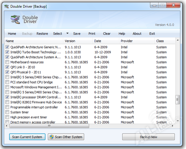 Double Driver – это эффективный менеджер драйверов на ПК. Программа оперативно анализирует систему и предоставляет необходимую информацию о драйверах: версия, производитель, дата, класс и т.п. Список можно сохранить, распечатать, а также провести его выборочную обработку. При помощи приложения Double Driver можно моментально выявить устаревшие драйверы. Данная утилита создает резервные копии драйверов на высокой скорости – формирование 1-ой копии длится менее 1 минуты. Скопированные файлы хранятся в папках, которые названы идентично устройствам. Предусмотрен специальный фильтр, отображающий по запросу драйвера определенных производителей.