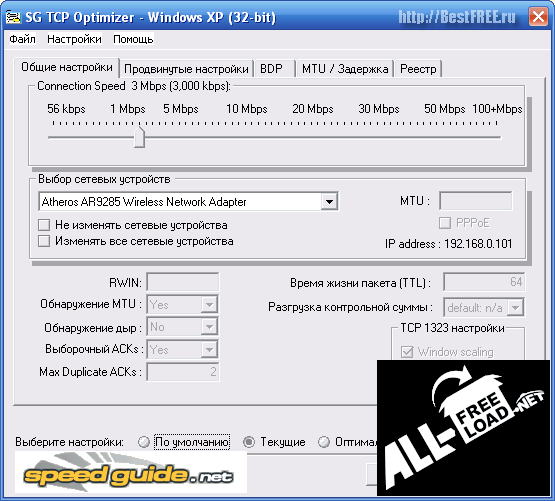 Стоит отметить, что программа поддерживает полноценную работу с различными типами интернет-подключения, начиная от модемного и заканчивая кабельным соединением. Утилита также позволяет вносить всевозможные изменения в ToS, RWIN и даже QoS.