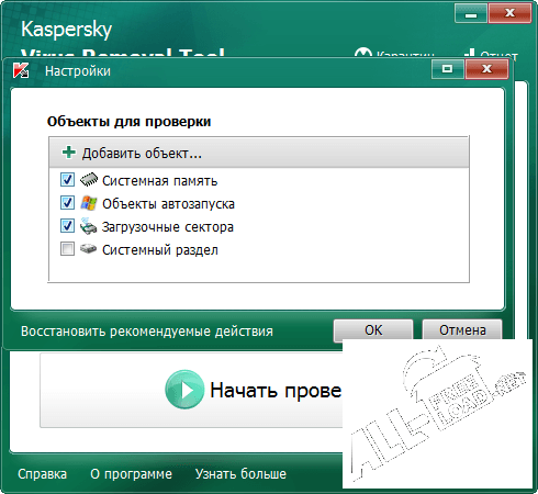 Ключевые особенности сканера Kaspersky Virus Removal Tool: