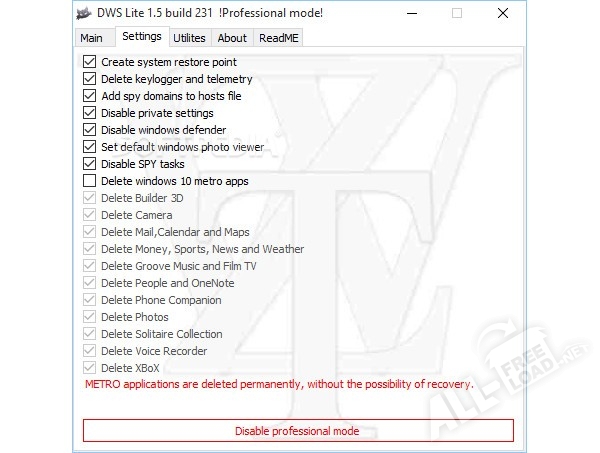 Destroy Windows 10 Spying — небольшая, но очень полезная программа, благодаря которой можно отключить службы слежения за пользователем в Windows 10. Несмотря на то, что Microsoft заявляют, что контроль данных необходим для обеспечения безопасности, многие пользователи отрицательно относятся к такому вмешательству в частную жизнь. Именно для них была создана утилита DWS. Каждый может Destroy Windows 10 Spying скачать бесплатно и предотвратить кражу собственных данных. Для этого не придётся работать с командной строкой, либо создавать собственные скрипты — достаточно активировать нужные триггеры в графическом интерфейсе программы. В некоторых случаях потребуется перезагрузка, оправданная изменением параметров системы.
