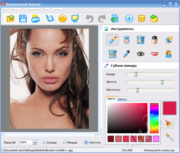 Для девушек, которым необходимо немного улучшить свои фотографии, представить, как они будут выглядеть с тем или иным макияжем, а также для тех, кто просто любит макияж, несложная, но в тоже время достаточно функциональная программа Виртуальный Макияж станет полезным и незаменимым помощником.