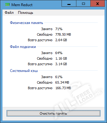 Mem Reduct – небольшое приложение с помощью которого можно быстро освободить неиспользуемые страницы памяти. Производится качественный анализ памяти, что даёт возможность убрать всё лишнее или неиспользуемое. Благодаря умному алгоритму, достаточно скачать Мем Редукт и забыть о том, что бывает нехватка ресурса памяти в системе. Приложение также отслеживает все изменения в данном отделе, позволяет отсортировать наиболее требовательные ресурсы. После закрытия используемой программы сразу освобождается дамп и кэш. Что обычно происходит только после перезагрузки системы или при нехватке ресурсов.