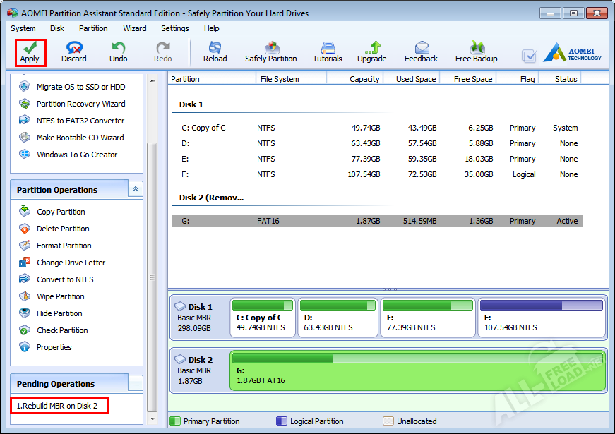 Наиболее полезные возможности AOMEI Partition Assistant: