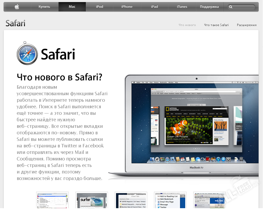 Максимум удобства и простоты в использовании – таков девиз Safari, который, по мнению создателей, удачно сочетал в себе два ключевых качества: полный набор функций для продуктивной работы в Сети и оптимальную скорость. Этот стремительный веб-браузер способен загружать страницы в 2 раза быстрее, чем Internet Explorer, на 60% обгоняет Firefox, а скорость браузера Opera меньше Safari почти в 3 раза. Обработка JavaScript также происходит гораздо эффективнее, чем в других приложениях. Особенно приятно, что все перечисленные преимущества можно оценить без лишних затрат, ведь Safari скачать бесплатно может каждый желающий.