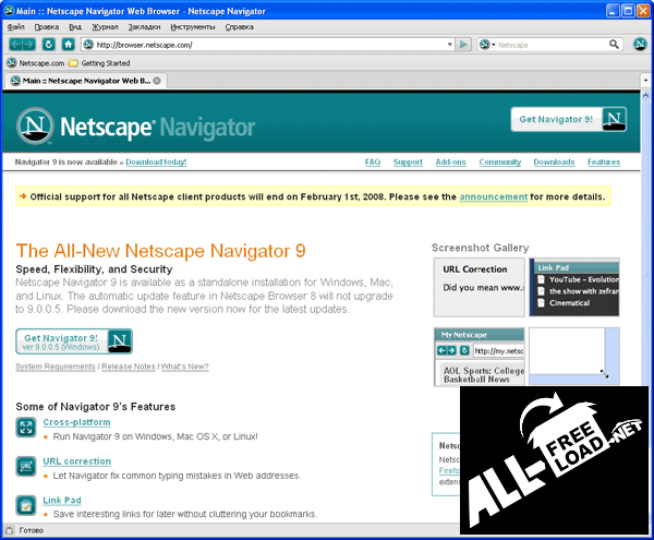 Netscape – это приложение является мощным программным комплексом, включающим в себя богатейший набор интернет-утилит. Сюда входят столь мощные сетевые-средства для работы в Интернет, как: удобный браузер для просмотра страниц (Netscape Navigator), клиент для работы с электронной почтой (Netscape Mail), утилита для онлайн общения (AOL Instant Messenger). Помимо таких первоочередных компонентов, в этом программном продукте присутствует также ряд дополнительных и удобных утилит, здесь и продвинутый редактор страниц HTML (Netscape Composer), удобный справочник контактов (Netscape Address Book), а также полезный инструмент Netscape Help Support Center, который является первоклассным центром помощи, в полной мере позволяющий получить поддержку по любому вопросу пользователя.