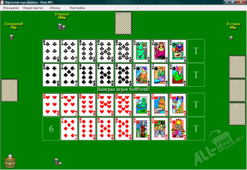 Игроки, достаточно много имевшие дело с «Девяткой», и компьютерную ее версию освоят легко. Здесь важнее всего – раньше своих соперников избавиться от всех своих карт. В виртуальном пространстве тоже надо проявлять повышенное внимание и стараться не пасовать до того момента, как вы точно убедитесь, что ходить вам и вправду нечем.
