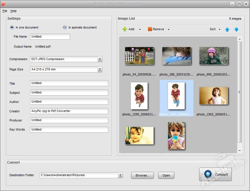 JPG to PDF – это программа, конвертирующая изображения в файл PDF. Утилита поддерживает преобразование файлов не только таких распространенных форматов, как JPEG, GIF, PNG, BMP, но и еще больше 80 менее распространенных форматов. Чтобы конвертировать jpeg в pdf, нужно только открыть программу: все остальное она произведет автоматически.