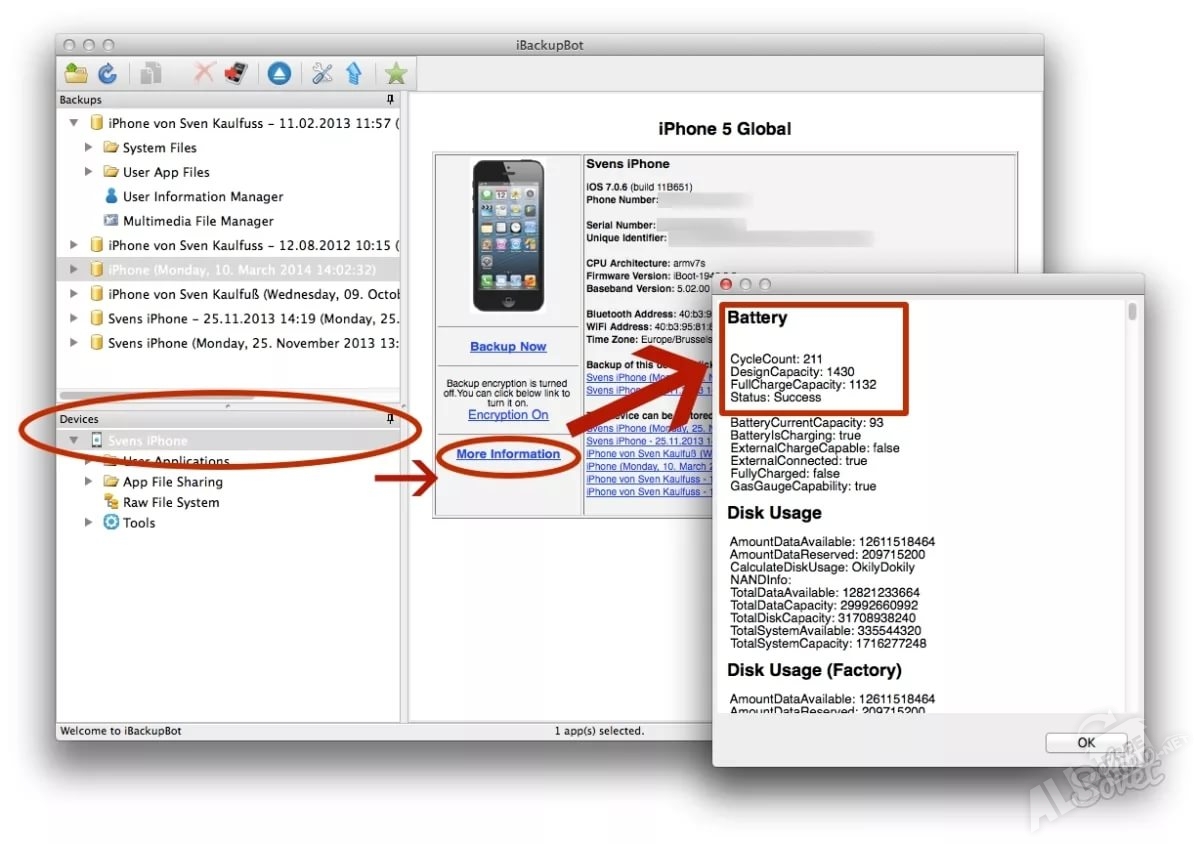 IBackupBot – небольшое, но весьма полезное приложение для резервного копирования не только данных, но еще и контактов, сообщений, истории посещения, паролей и много другого. В отличие от аналогов, достаточно один раз скачать Айбесскапбот на устройство, и далее оно будет автоматически запускаться при подключении. В папках, которые видит программа, хранится вся информация пользователя и активность: история его звонков, смс переписки, лог приложений, персональные настройки и др. Это позволяет, к примеру, перевести все на другое устройство (что более удобно). Не обязательно подключать гаджет к ОС Виндовс, можно через беспроводную связь передать важные данные.