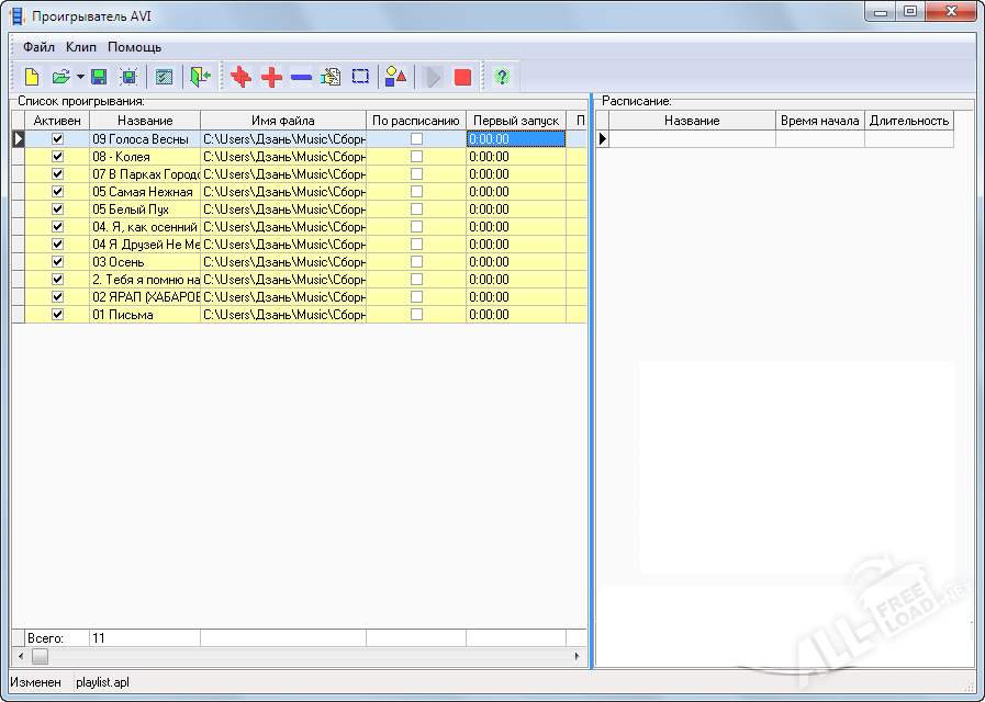 При помощи специальной функции "Воспроизведение по расписанию", которая реализована в программе Проигрыватель AVI, можно не только создавать рекламные видеоролики, но и планировать проведение видеоконференций.