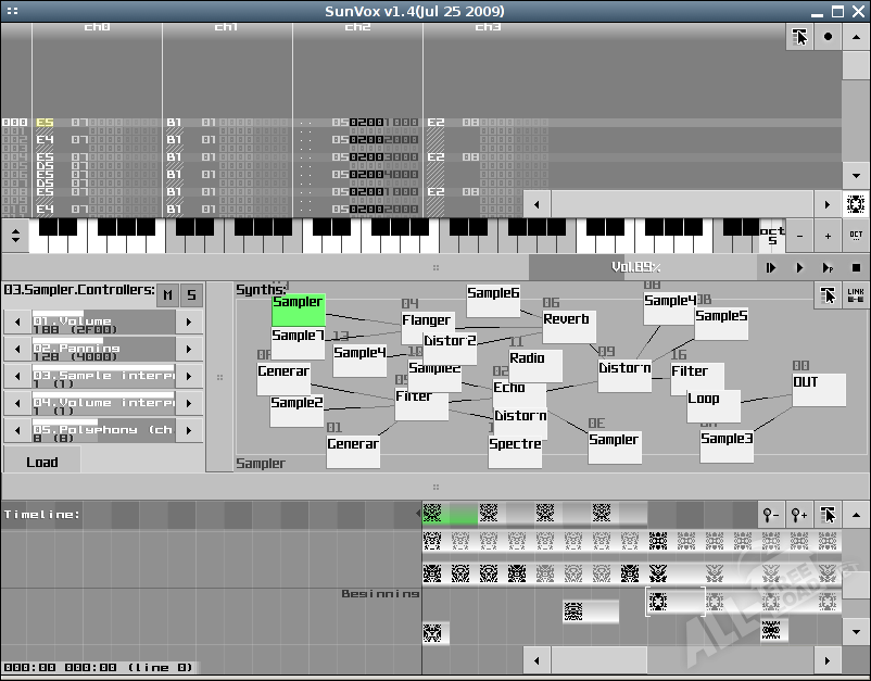Универсальное приложение СанВокс объединяет в себе мощные инструменты редактирования всевозможных аудиофайлов. С помощью встроенных программных компонентов можно без особого труда и специальных навыков собственноручно создавать оригинальные музыкальные композиции. Наличие модульного синтезатора, который входит в состав секвенсора, предоставляет возможность качественно обрабатывать различные звуковые файлы. Пользовательский интерфейс программы SunVox отличается простым графическим оформлением и поддерживает работу с большим количеством языковых пакетов. Гибкая архитектура приложения обеспечивает высокую совместимость с различными операционными системами и цифровыми устройствами.