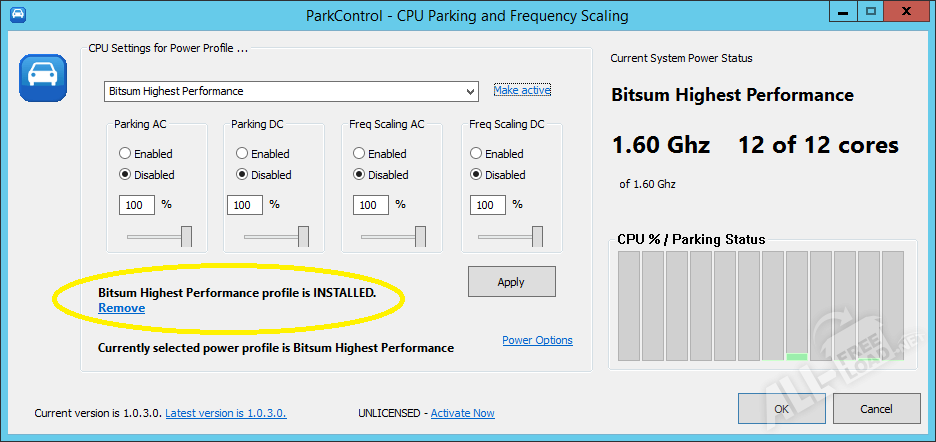 ParkControl – приложение для управления режимом работы центрального процессора. Имеет свои настройки, регулируемые параметры, режимы работы и отображает текущую информацию о работе. Достаточно скачать Паркконтроль на компьютер, и больше не понадобится аналогов. Утилита предоставляет доступ ко всем нужным настройкам, отображает текущую загруженность процессора, каждого отдельного ядра, температуру, количество свободных блоков и т.д. Основные параметры касаются регулирования парковки и частоты AC и DC.
