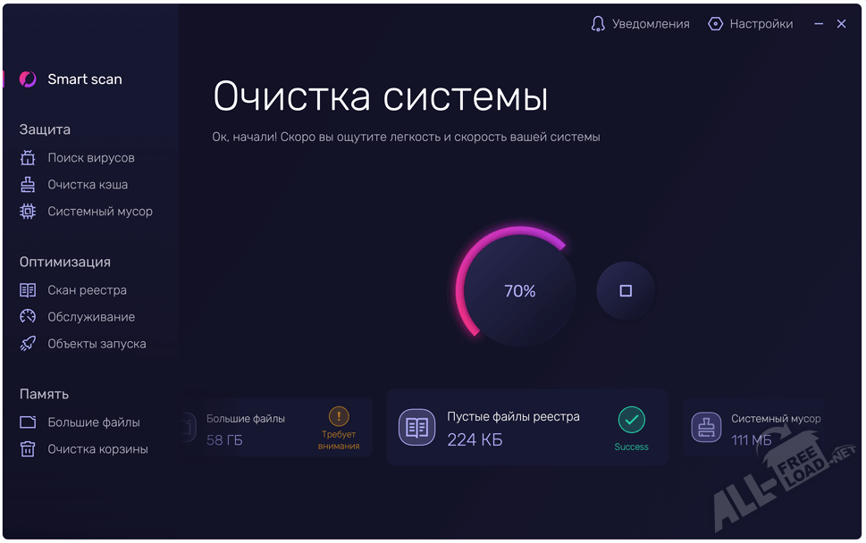 - Возможность быстро очистить реестр и оптимизировать жесткий диск, сняв с него нагрузку и оттянув момент его устаревания.