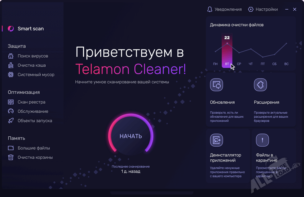 Программа Telamon Cleaner является инновационным программным обеспечением, которое создано для того, чтобы обеспечивать Вам максимальный комфорт в процессе работы за компьютером. Каждый пользователь персонального компьютера рано или поздно сталкивается с проблемой, когда операционная система начинает виснуть и это вызывает заметный дискомфорт в работе. Для того, чтобы избежать подобной ситуации, рекомендуется компьютера скачать программу Telamon Cleaner и ноутбука.