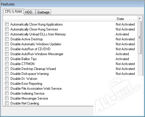 Используя Red Button, пользователь может осуществлять сканирование компьютера и исправление найденных ошибок в системном реестре. Такая утилита улучшает производительность игровых программ, позволяет удалять или скрывать компоненты Windows, являющиеся встроенными. С помощью этой программы возможно завершение неиспользуемых процессов.