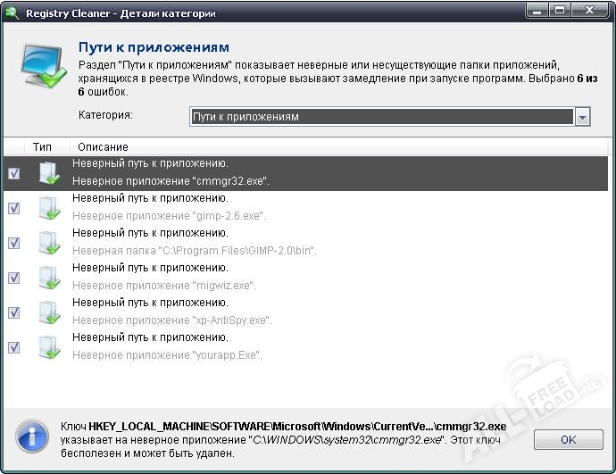 - Проверка только безопасных категорий реестра по умолчанию;