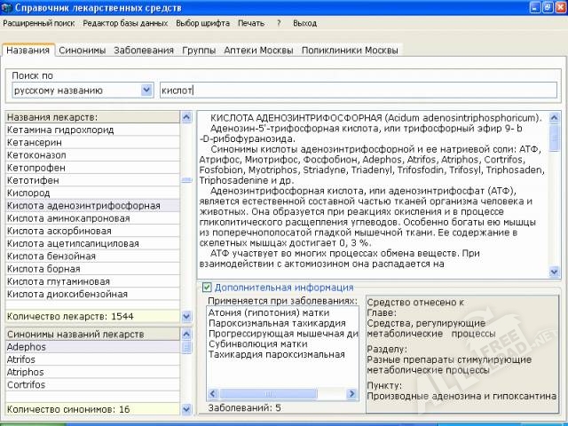 В каких случаях человеку может понадобиться информация о том или ином лекарстве? Возможно он заболел и не имеет возможности проконсультироваться с доктором, а лекарство приобрести просто необходимо. Или же врач выписал препарат, который слишком дорогой и нужно отыскать более доступный вариант лекарства с похожими свойствами и возможностями. В том и другом случае, справочник различных лекарственных средств будет отличной помощью и в буквальном смысле решит любые проблемы человека. Иметь такую программу на своем компьютере выгодно, ведь не всегда есть возможность выйти в интернет и там отыскать что-то подходящее на тему заболевания.