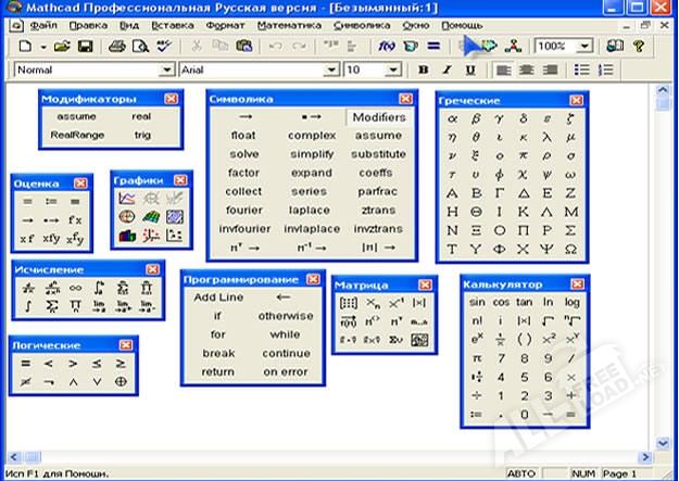 Файлы Mathcad представляют собой вычисления, написанные на языке, очень сходном с математическим, что делает создание проектов в приложении более простым. Программа состоит из редактора текста и формул, графических средств для создания диаграмм, собственно вычислителя и обширного набора данных о математике и инженерии. Русская версия для Windows - упрощает работу, и позволяет строить формулы с использованием многоэтажных дробей, в которых могут применяться привычные математические знаки такие, как корень, умножение, интеграл и другие. Удобные инструменты создания графиков и сравнительных диаграмм объединяют в себе мощность и простоту визуализации данных, которую можно использовать для отчетов.